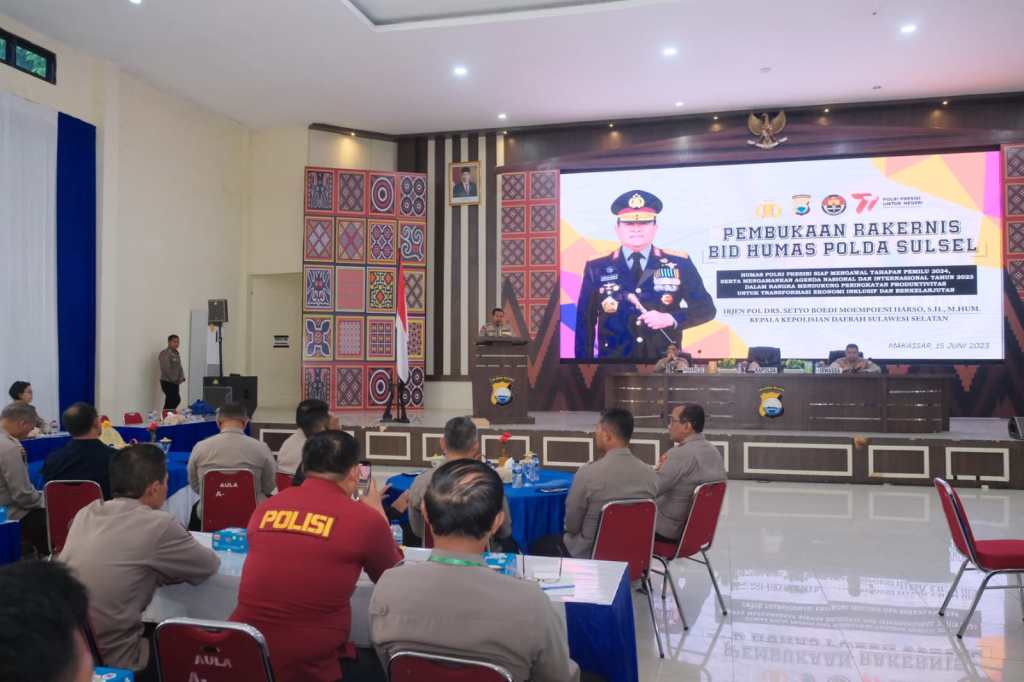 Bidang Humas Polda Sulsel adakan Rapat Kerja Teknis (Rakernis) tahun 2023, di buka langsung oleh Kapolda Sulsel Irjen Pol. Drs. Setyo Boedi Mompoeni Harso.,SH.,M.Hum dan turut hadir Wakapolda, Irwasda Polda Sulsel beserta PJU Polda Sulsel, Kamis (15/6/2023).