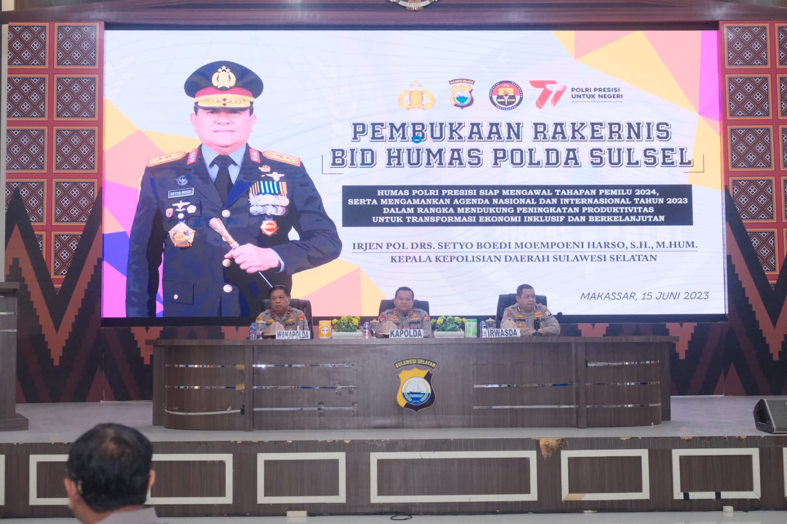 Bidang Humas Polda Sulsel adakan Rapat Kerja Teknis (Rakernis) tahun 2023, di buka langsung oleh Kapolda Sulsel Irjen Pol. Drs. Setyo Boedi Mompoeni Harso.,SH.,M.Hum dan turut hadir Wakapolda, Irwasda Polda Sulsel beserta PJU Polda Sulsel, Kamis (15/6/2023).