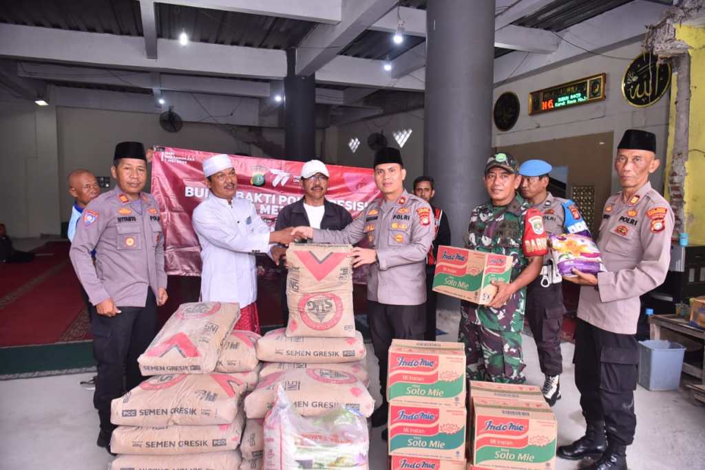 ” Kami dari jajaran polsek Cengkareng memberikan bantuan bahan bangunan dan sembako berupa 20 sak semen, 20 dus mie instan dan puluhan kilogram Beras untuk rumah ibadah,” ujar Kapolsek Cengkareng kompol Hasoloan Situmorang saat dikonfirmasi, Jumat, 16/6/2023.
