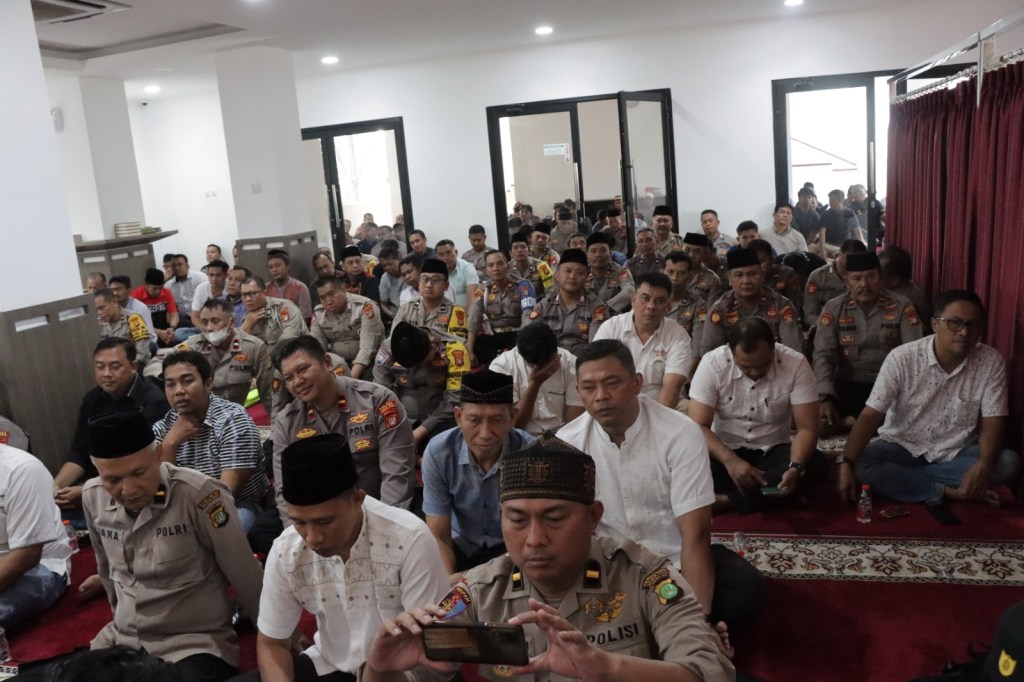 Sebanyak 200 personel Polres Metro Jakarta Barat dengan khidmat mendengarkan tausiyah yang diberikan oleh Ustadz Das’ad latief