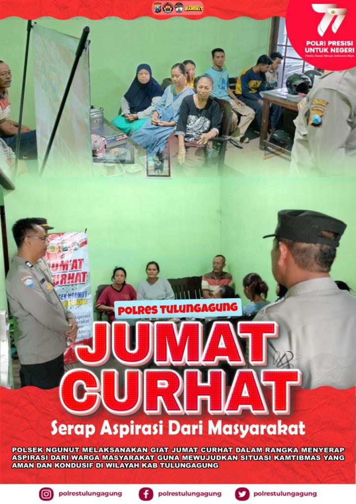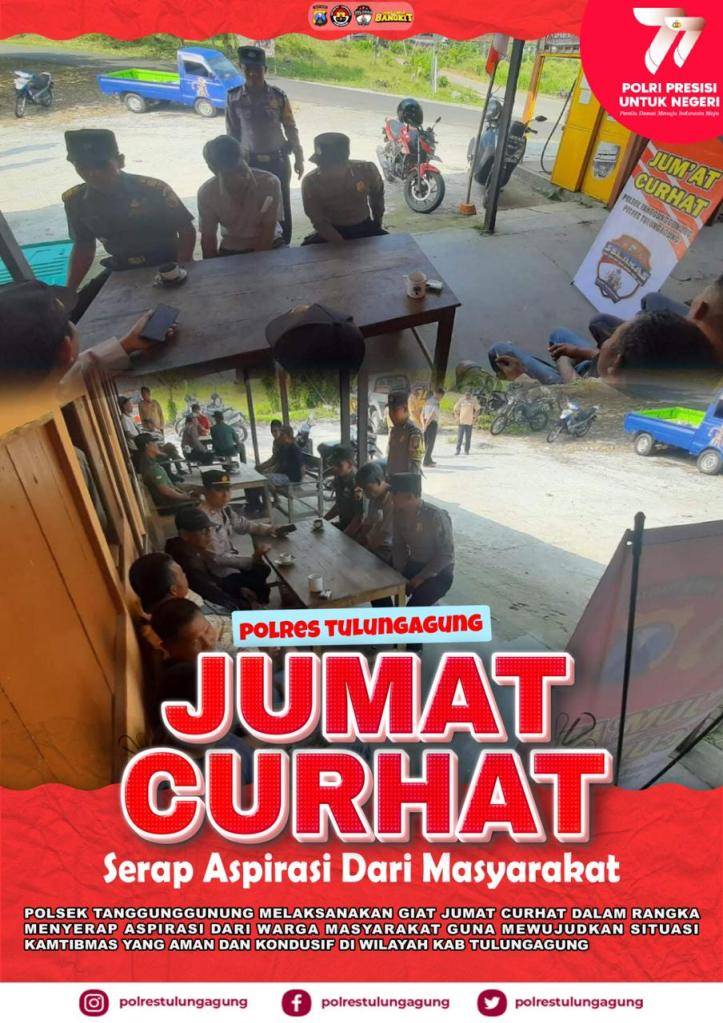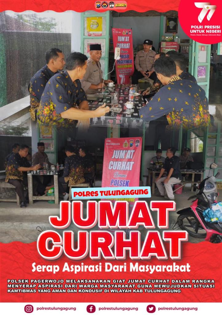 TULUNGAGUNG – Dalam rangka menyerap aspirasi masyarakat yang ada di Wilayah Kabupaten Tulungagung, Polres Tulungagung menggelar program Jum’at Curhat secara serentak.