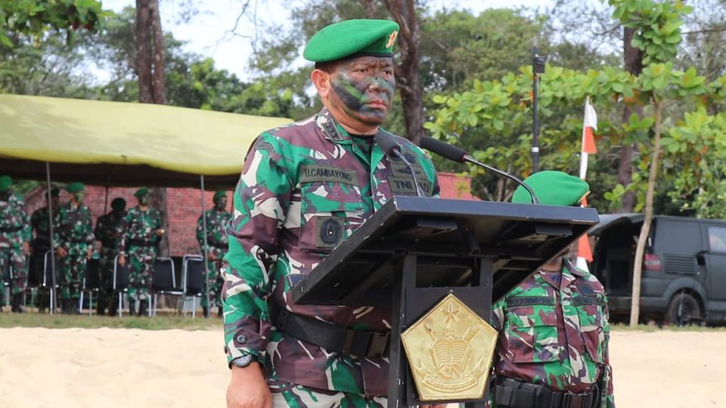 Singkawang – Komandan Rindam XII/Tpr Kolonel Inf Jones Sasmita, S.I.P., M.M., yang diwakili Wadan Rindam XII/Tpr Kolonel Inf Uchi Cambayong, S.I.P., memimpin Upacara Penutupan Yudhawastu Pramukha dan Tradisi Pembaretan Pendidikan Kejuruan Tamtama Infanteri Abituren Dikmata TNI AD Gelombang II TA 2022 (OV) yang bertempat di Pantai Pak Lotay Pasir Panjang, Kota Singkawang. (Minggu, 16/7/2023)