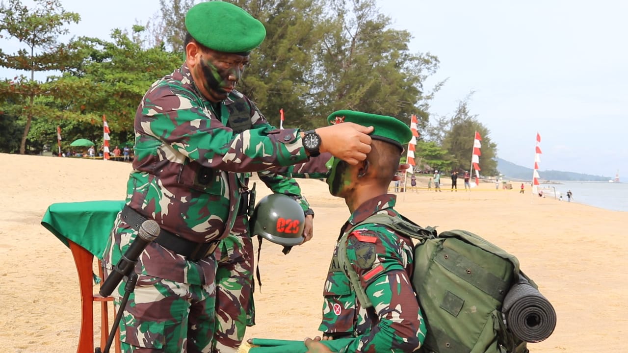 Singkawang – Komandan Rindam XII/Tpr Kolonel Inf Jones Sasmita, S.I.P., M.M., yang diwakili Wadan Rindam XII/Tpr Kolonel Inf Uchi Cambayong, S.I.P., memimpin Upacara Penutupan Yudhawastu Pramukha dan Tradisi Pembaretan Pendidikan Kejuruan Tamtama Infanteri Abituren Dikmata TNI AD Gelombang II TA 2022 (OV) yang bertempat di Pantai Pak Lotay Pasir Panjang, Kota Singkawang. (Minggu, 16/7/2023)
