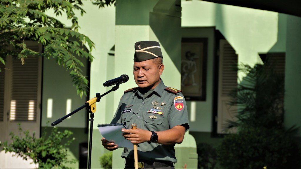 Yogyakarta – Komandan Kodim (Dandim) 0734/Kota Yogyakarta Kokonel Arh Burhan Fajari Arfian, S.Sos., memimpin acara laporan Korps tradisi pelepasan purna tugas dan penyerahan jabatan Perwira Kodim 0734/Kota Yogyakarta, di Lapangan Upacara Makodim 0734/Kota Yogyakarta, Senin (17/07/2023).