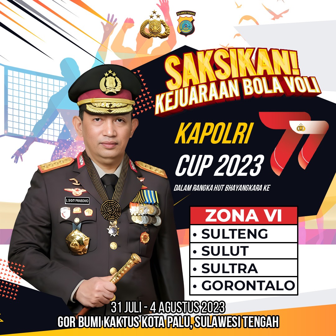 Kabidhumas Polda Sulteng Kombes Pol Djoko Wienartono dalam keterangan resmi yang diteruskan kepada media mengatakan, Polda Sulteng dipercaya sebagai tuan rumah Kejuaraan bola voli Kapolri Cup Tahun 2023 zona VI..