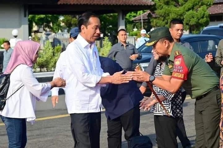 Keberangkatan Presiden dan Ibu Iriana menuju Pangkalan TNI AU Abdulrachman Saleh, Kabupaten Malang dilepas oleh Gubernur Jawa Tengah, Ganjar Pranowo beserta istri, Pangdam IV/Diponegoro, Mayjen TNI Widi Prasetijono beserta istri, Kapolda Jawa Tengah, Irjen Pol Ahmad Luthfi, Danlanud Adi Soemarmo, Marsma TNI Agus Setiawan beserta istri, dan Danrem 074/Warastratama, Kolonel Inf Ali Akhwan beserta istri.