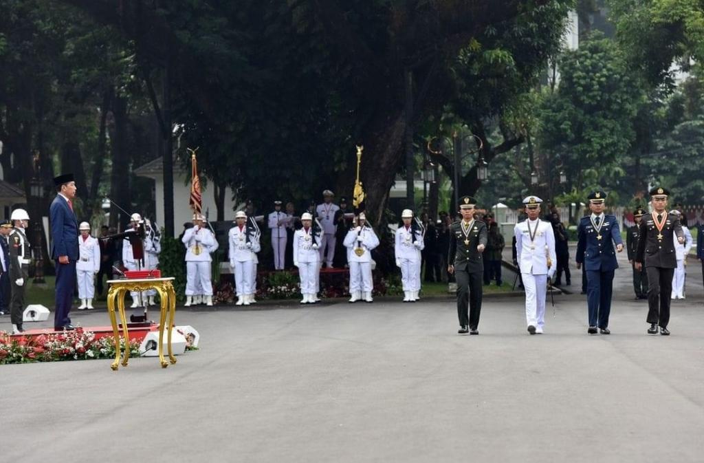 Mengawali amanatnya, Presiden Jokowi memberikan ucapan selamat kepada seluruh perwira TNI dan Polri yang dilantik.