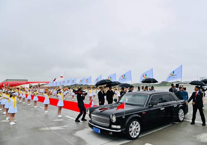 Selain itu, ketibaan Presiden Jokowi dan Ibu Iriana juga disambut meriah oleh sejumlah pelajar RRT yang berbaris mengantarkan Presiden serta Ibu Iriana menuju kendaraan.