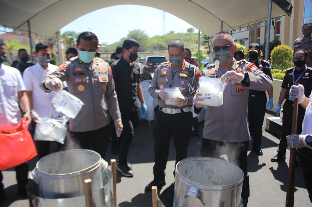 “barang bukti yang kita musnahkah ada yang temuan, hasil penyelesaian restorative justice sesuai Perpol 08 dan yang paket besar hasil pengungakapan 9 Juni di Tolitoli,” ujar Dasmin