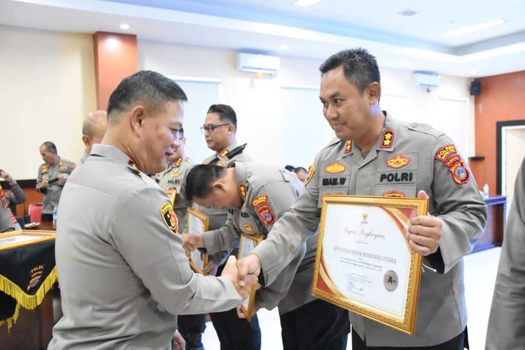 Adapun 5 Kapolres yang menerima penghargaan antara lain Kapolresta Palu, Kapolres Donggala, Kapolres Parigi Moutong, Kapolres Morowali Utara dan Kapolres Banggai