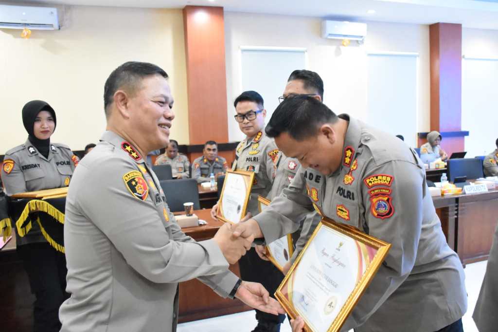 “Empat Kapolres dan Kapolresta diserahkan penghargaan dari Kementerian PANRB dan satu Kapolres diserahkan penghargaan dari Kapolri” Jelas Kombes Pol. Djoko Wienartono,