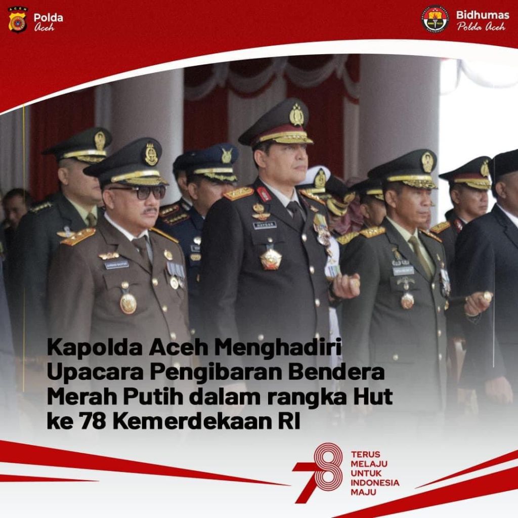 KAPOLDA ACEH MENGHADIRI UPACARA PENGIBARAN MERAH PUTIH HUT RI KE- 78