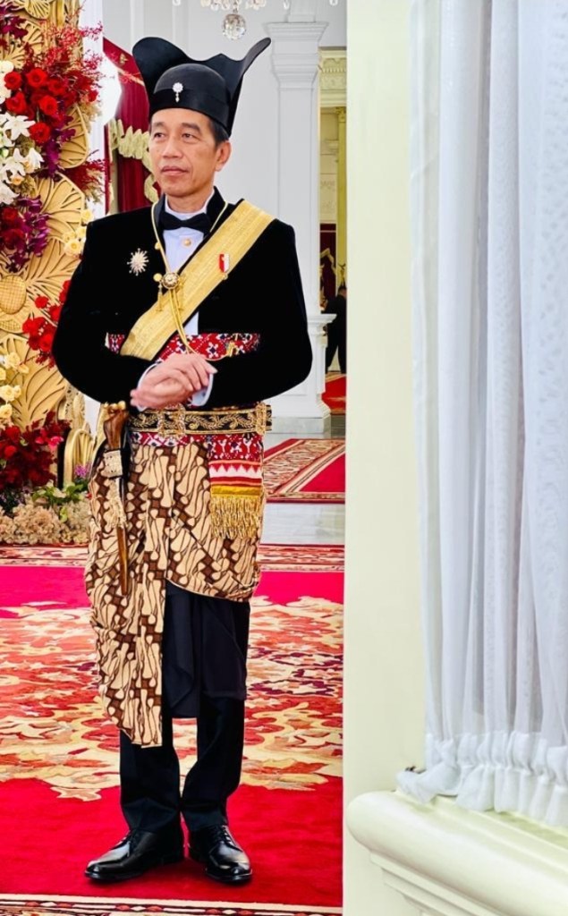 ForkabiNews – Dalam Rangka memperingati Hut RI Ke 78 tahun di istana merdeka (17/08) Presiden Joko Widodo memakai busana Ageman ini dipakai oleh Para Raja Pakubuwono Surakarta Hadiningrat dalam acara Enggar Eggar soho Tedhak Loji, yang artinya saat dimana Raja keluar dari Keraton dengan menaiki kereta kuda, diikuti dengan perangkat keraton untuk terjun langsung melihat kondisi kawulo/masyarakat.