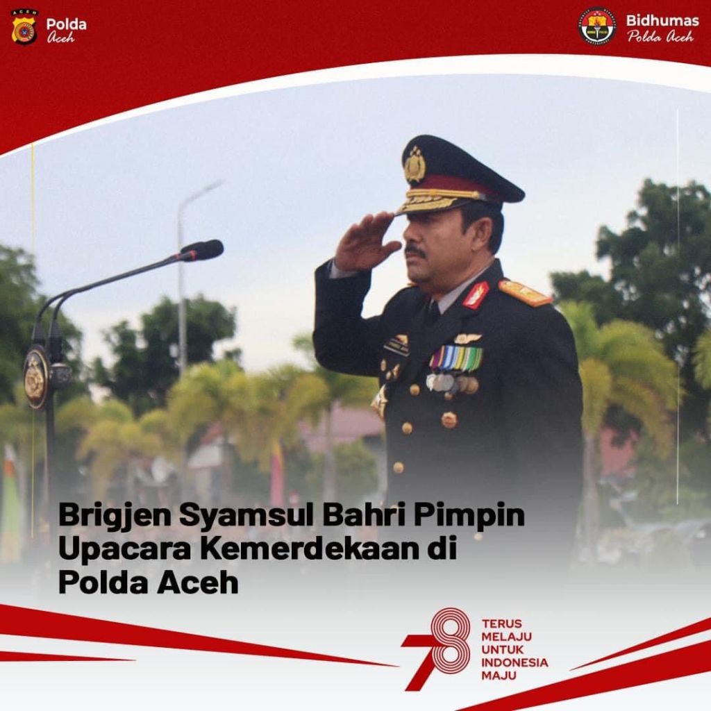 Wakapolda Aceh Brigjen Syamsul Bahri menjadi inspektur upacara (Irup) kemerdekaan republik Indonesia di lapangan apel Polda Aceh, Kamis, 17 Agustus 2023.