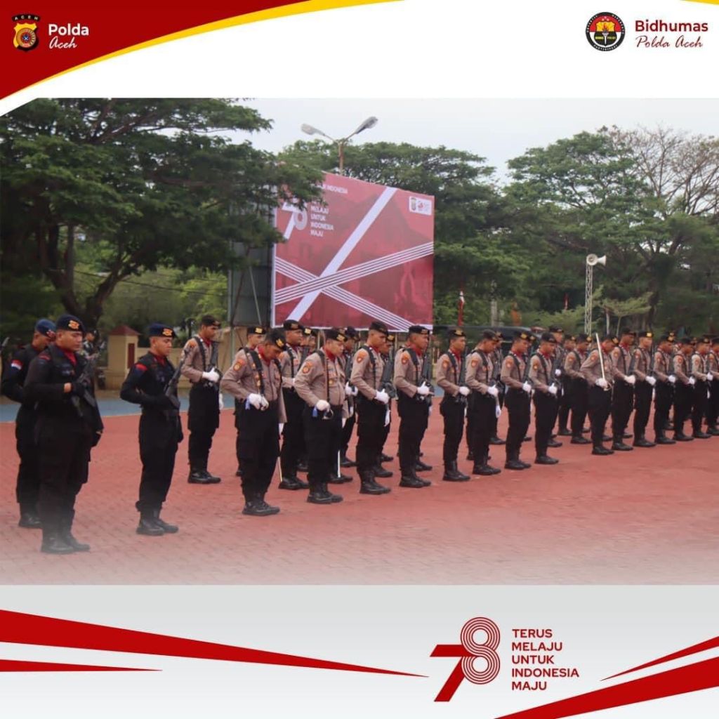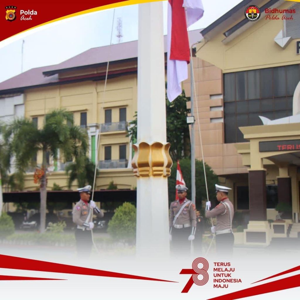Wakapolda bersama beberapa PJU dan personel melaksanakan upacara pengibaran bendera merah putih di Polda Aceh, sedangkan Kapolda mengikutinya di kantor gubernur bersama Forkopimda.