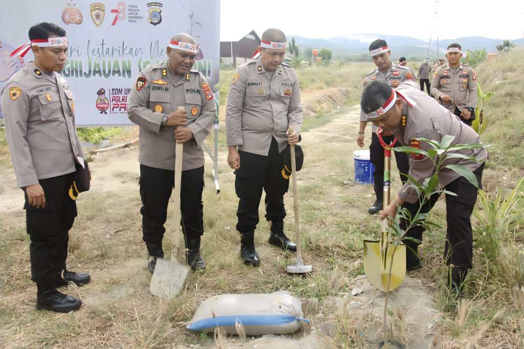 Palu – Kepolisian Daerah Sulawesi Tengah (Polda Sulteng) melakukan penanaman 5.690 bibit pohon guna mendukung program penghijauan sekaligus menyemarakkan peringatan Hari Ulang Tahun (HUT) ke-78 Kemerdekaan RI.