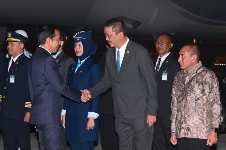 Sesaat setelah turun dari pesawat, Presiden tampak disambut oleh Gubernur Sumatra Utara Edy Rahmayadi, Pangdam I/Bukit Barisan Mayjen TNI A. Daniel Chardin, dan Kapolda Sumatra Utara Irjen Pol. Agung Setya Imam.