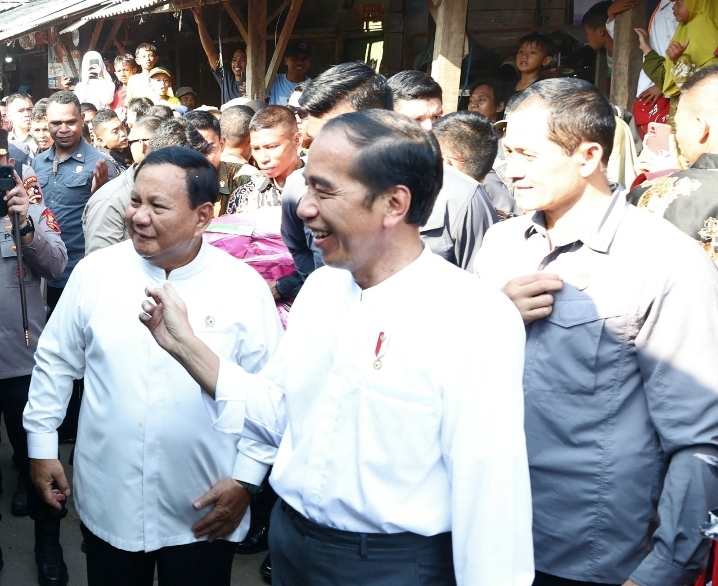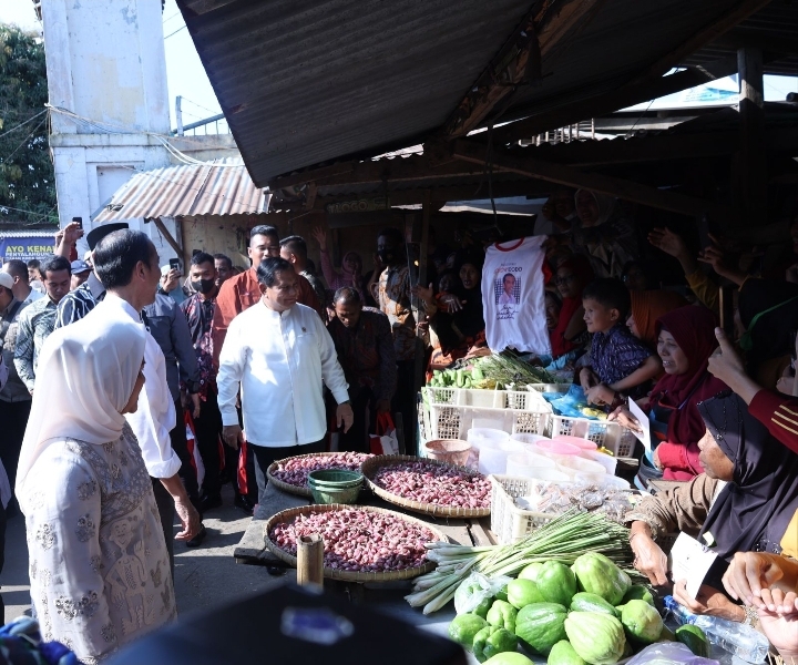 Menhan Prabowo Dampingi Presiden Jokowi Blusukan di Pasar Grogolan, Pekalongan