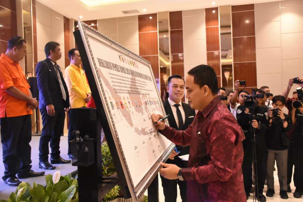 PALU, Komitmen 17 Partai Politik (Parpol) kontestasi Pemilu 2024 di Provinsi Sulawesi Tengah (Sulteng) hadir dalam Deklarasi Pemilu Damai yang digagas Polda Sulteng di Sriti Convention Hall Jalan Durian, Palu, Jumat (1/9/2023)