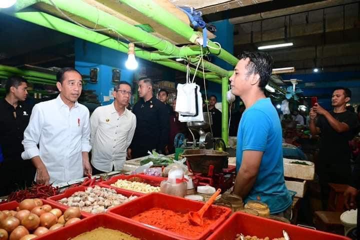 Presiden Joko Widodo meninjau harga dan pasokan sejumlah komoditas pangan yang ada di Pasar Jatinegara, Jakarta Timur, pada Selasa pagi, 19 September 2023. Berdasarkan hasil peninjauannya, Kepala Negara menyebut harga sejumlah komoditas pangan masih dalam kondisi yang baik.