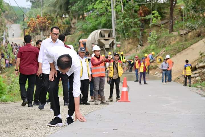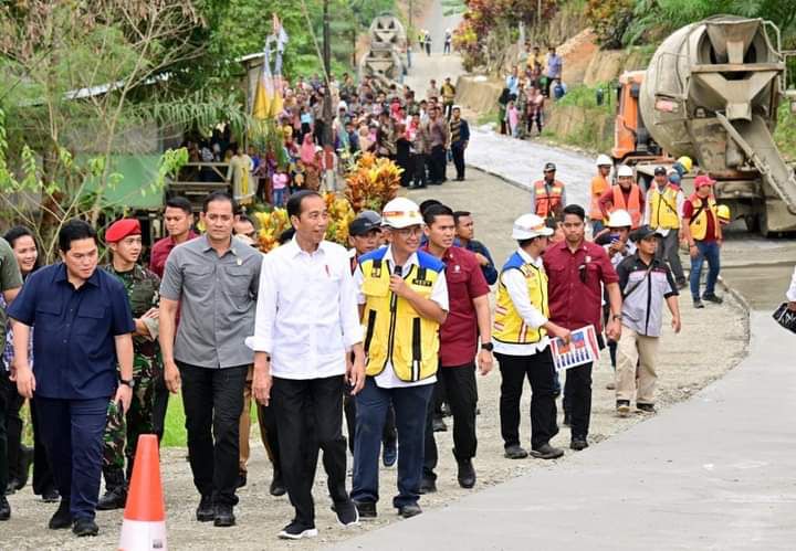 Presiden Joko Widodo meninjau progres penanganan Inpres Jalan Daerah (IJD) di Desa Agro Mulyo, Kecamatan Sepaku, Kabupaten Penajam Paser Utara, pada Sabtu, 23 September 2023. Presiden menyebut jalan tersebut nantinya akan menopang Ibu Kota Nusantara (IKN) sebagai jalan produksi dan akses menuju tempat wisata.