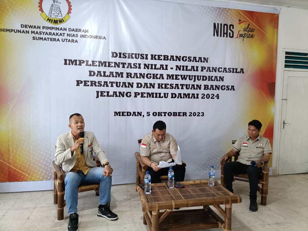 Medan,* Dalam rangka menyambut Pemilihan Umum (Pemilu) tahun 2024, Dewan Pimpinan Daerah Himpunan Masyarakat Nias Indonesia Sumatera Utara (DPD HIMNI Sumut) gelar diskusi kebangsaan di Kantor DPD HIMNI Sumut, Jalan Terompet No.20, Kelurahan Titi Rantai, Kecamatan Medan Baru, Kota Medan, Kamis (05/10/2023) sore.